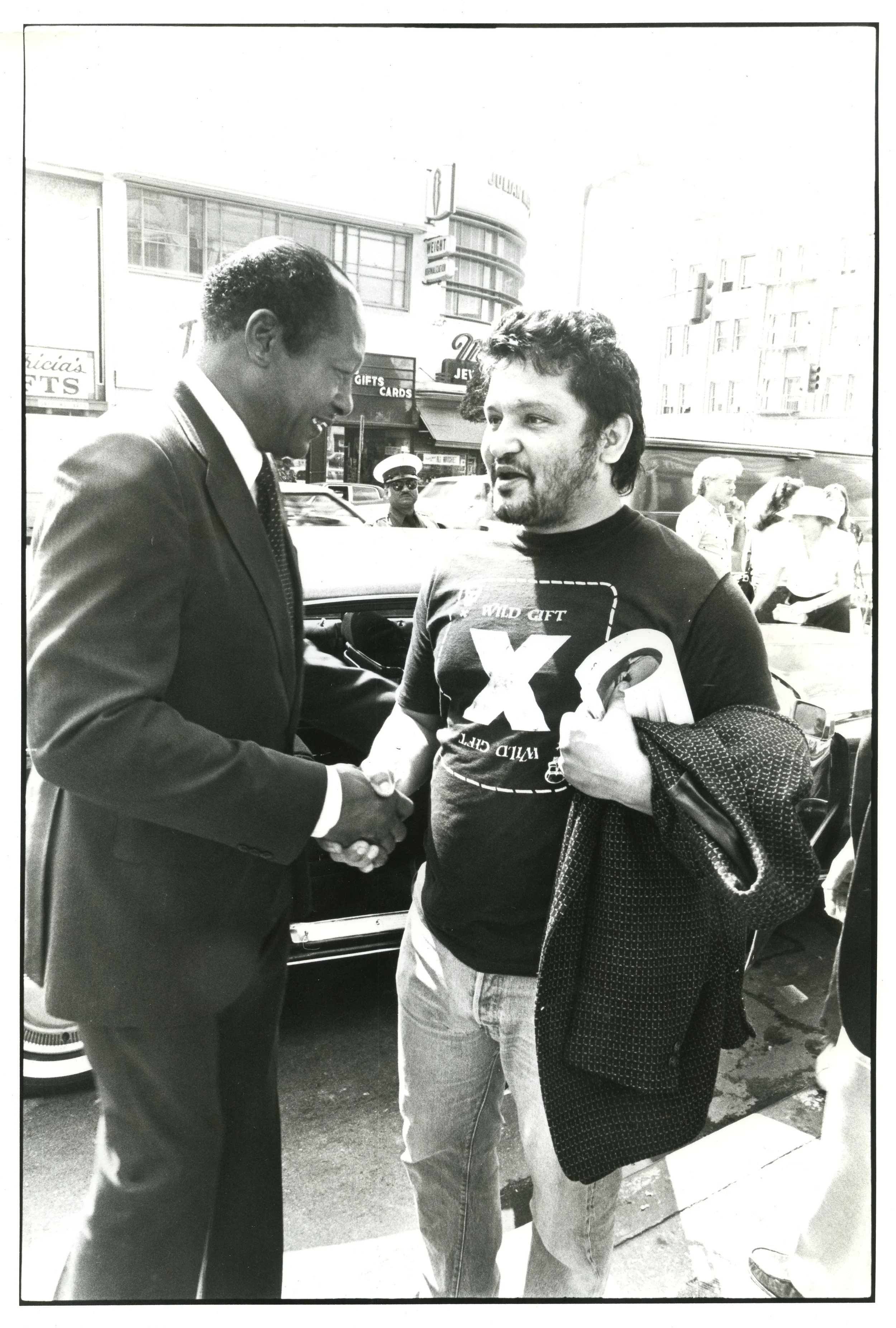 GARY: That's really the word. And everybody's still my friends. By the end of the eighties, I wasn't talking enough about Los Angeles. I became recognized as a music photographer. I loved the music, but I was talking about Los Angeles. I never stopped shooting the day light, but I needed to stop living at night. I continued to, because I was recognized, I did a small column, that's when I started “Take my Picture” at the L.A. Reader at the end of the eighties. There's a picture in the book of Carlos Guitarlos meeting Mayor Bradley. I took Carlos with me to cover a Hollywood star ceremony. He was living downstairs at my house. I was all in.